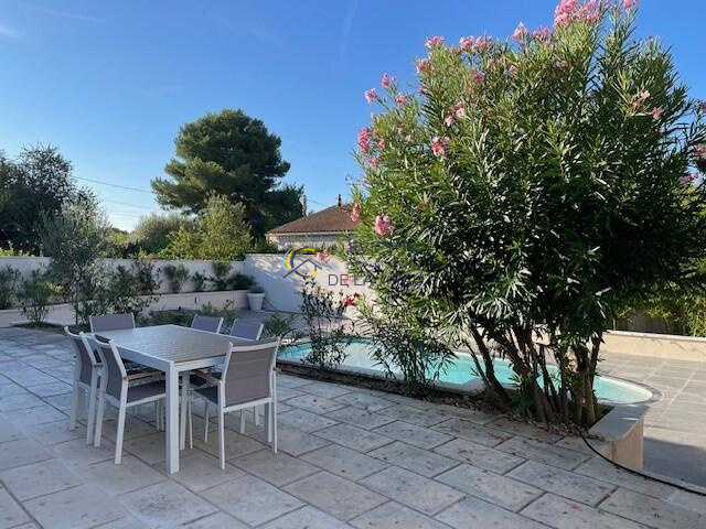 EGUILLES (13510) - Magnifique villa rénovée et entièrement meublée T5/6 avec terrain aménagé, terrasses et piscine comprenant au rdc : hall, dégagement, cuisine équipée, séjour, salle de bains, salle d'eau, WC, deux chambres, dressing, rangement extérieur et au premier étage : dégagement, deux chambres, WC