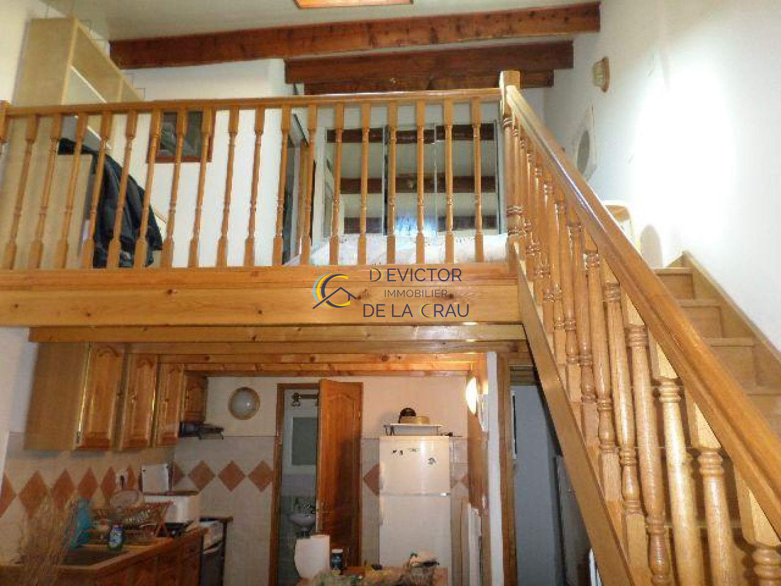1 chambre en mezzanine, un séjour avec coin-cuisine aménagé et équipé, une salle d'eau, un wc.